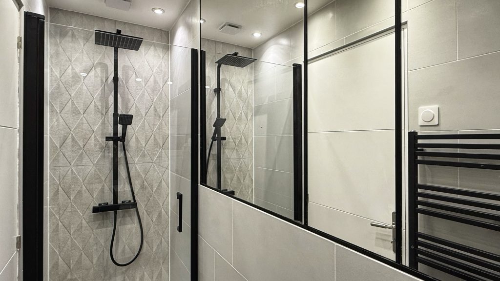 Ce projet concerne la rénovation d’une salle d’eau de 3 m², pensée pour offrir un maximum de confort dans un espace réduit, avec une esthétique épurée et résolument contemporaine.